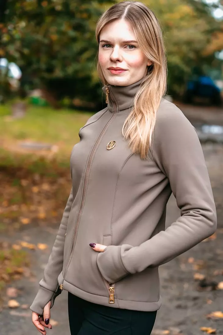 The Scuba blouse-jacket is made of a stretchy foam-like material, which perfectly adapts to the figure during training without losing its shape.  It is ideal for horseback riding in the transitional period and in colder days during indoor riding, when you don't want to dress in thick jackets, but you want warmth and good air circulation so you don't overheat.
