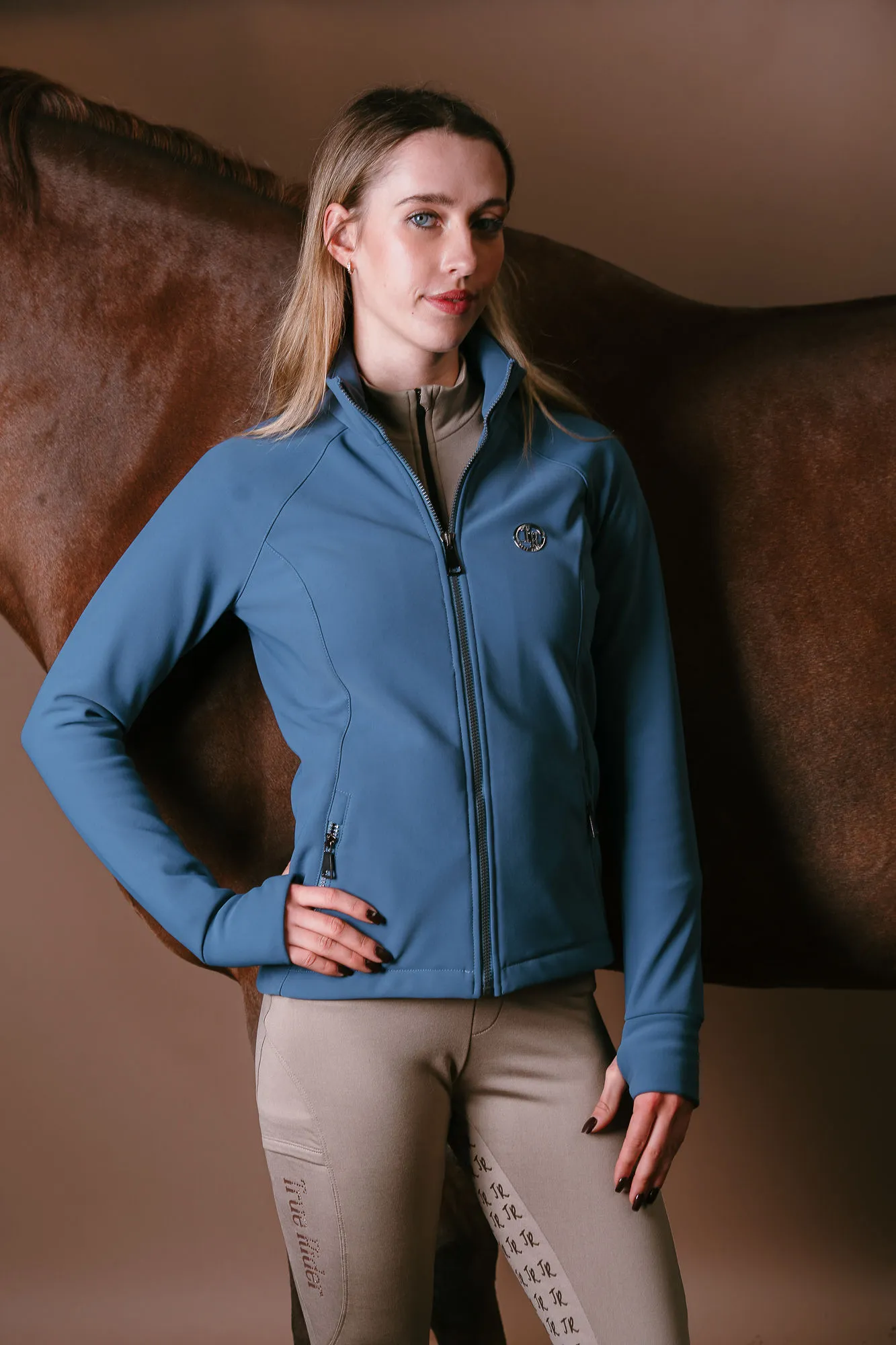 Die Scuba-Blousonjacke besteht aus einem dehnbaren, schaumstoffähnlichen Material, das sich beim Training perfekt an die Figur anpasst, ohne seine Form zu verlieren. Ideal für den Reitsport in der Übergangszeit und an kälteren Tagen beim Reiten in der Halle, wenn man sich nicht in dicke Jacken kleiden möchte, aber dennoch Wärme und eine gute Luftzirkulation wünscht, um nicht zu überhitzen.