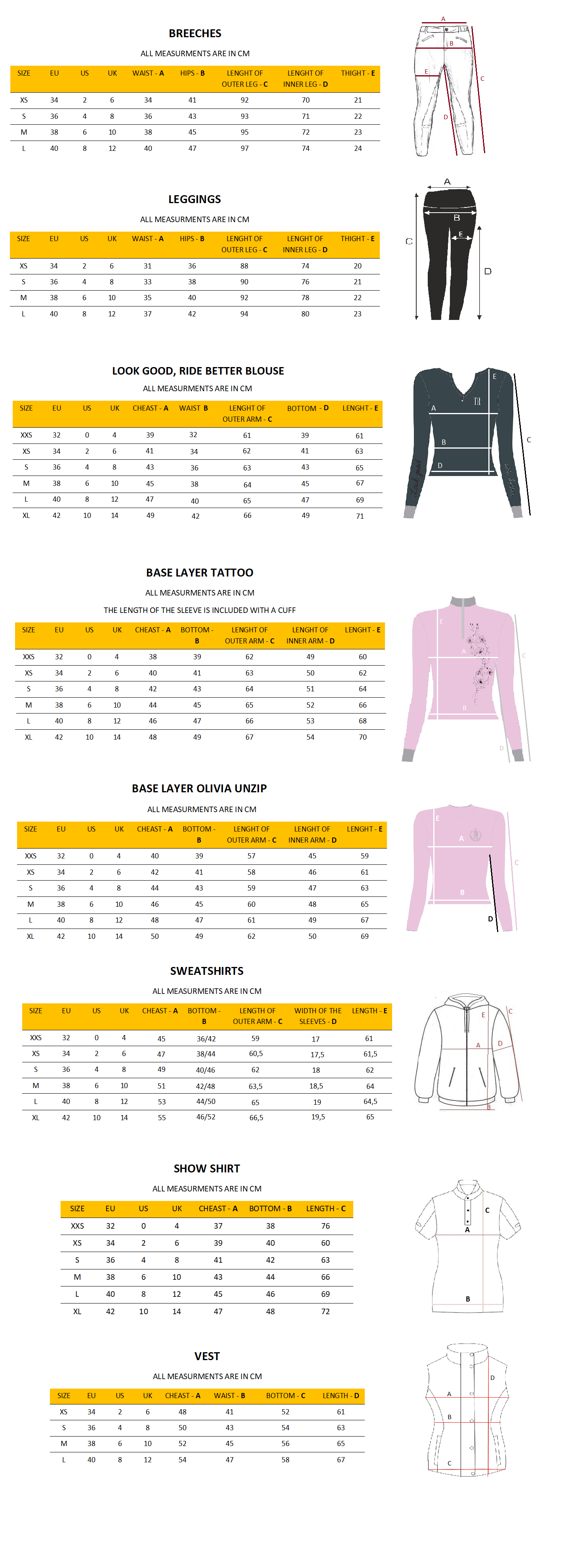 ALL PRODUCTS HAVE BEEN LAID FLAT AND MEASURED IN CM.