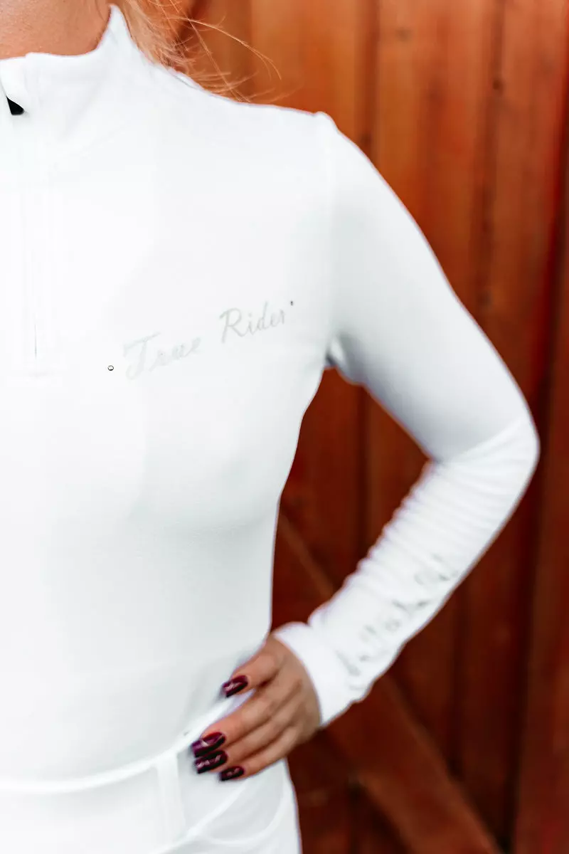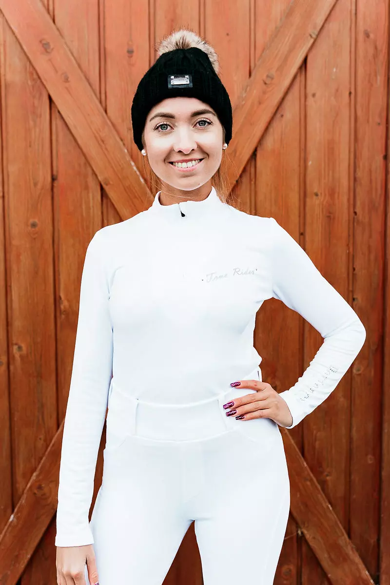 Das Modell Thermo Sweater Classic Elegance richtet sich an Fans von Klassik und Minimalismus, die abgetönte Designs bevorzugen. Das gemeinsame Element der gesamten Elegance Classic-Kollektion durfte nicht fehlen - das zarte silberne True Rider Logo-Emblem.